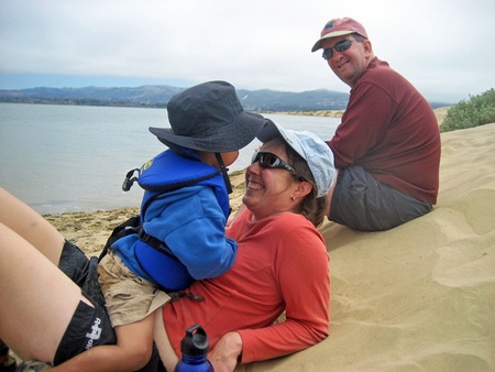Playing in the sand while camping at Morro Bay