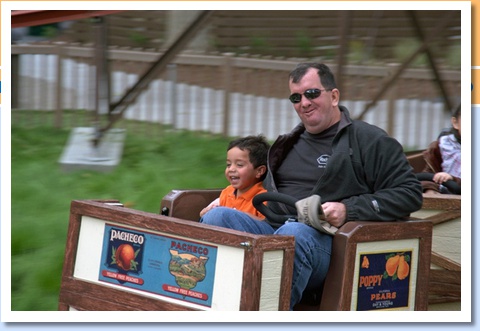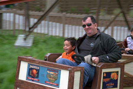 Dad and Anthony ride the roller coaster