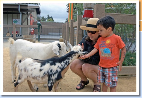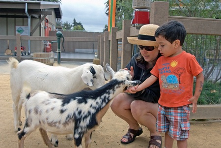 Feeding the goats at the petting zoo