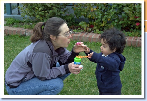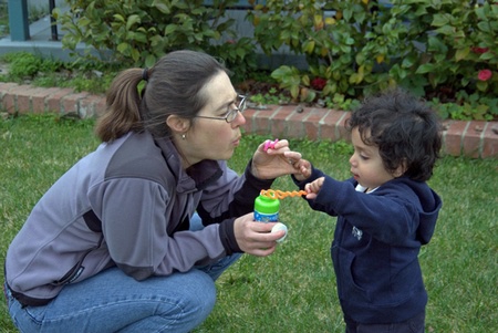 Blowing bubbles in the yard