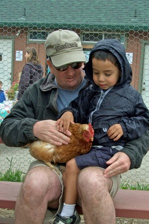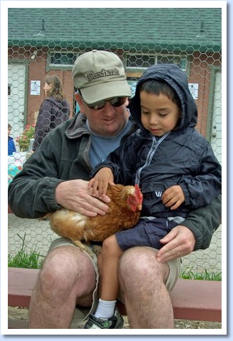 Holding a chicken at Farm Day