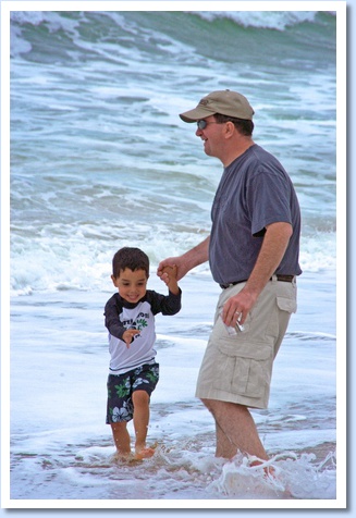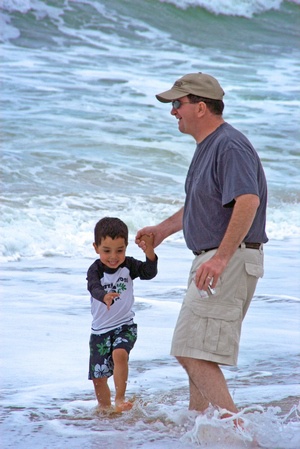 Playing in the waves at the beach