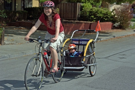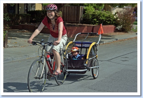 Testing out Karin's new bike trailer