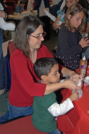 Helping Anthony make his snowman at