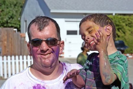Covered in paint while celebrating the Indian Festival of